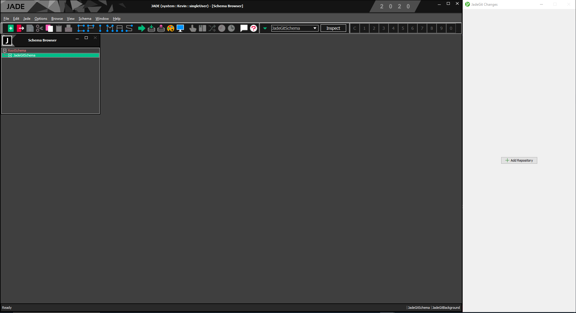 On startup of the JADE IDE, the JadeGitSchema will be installed automatically during logon.