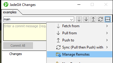 Remote options fetch, pull, push & sync can all be performed using the toolbar options in the changes explorer, which'll use the remote for the upstream branch associated with local branch. Alternatively, the menu options can be used to select which remote to fetch/pull from, push to or sync with.