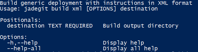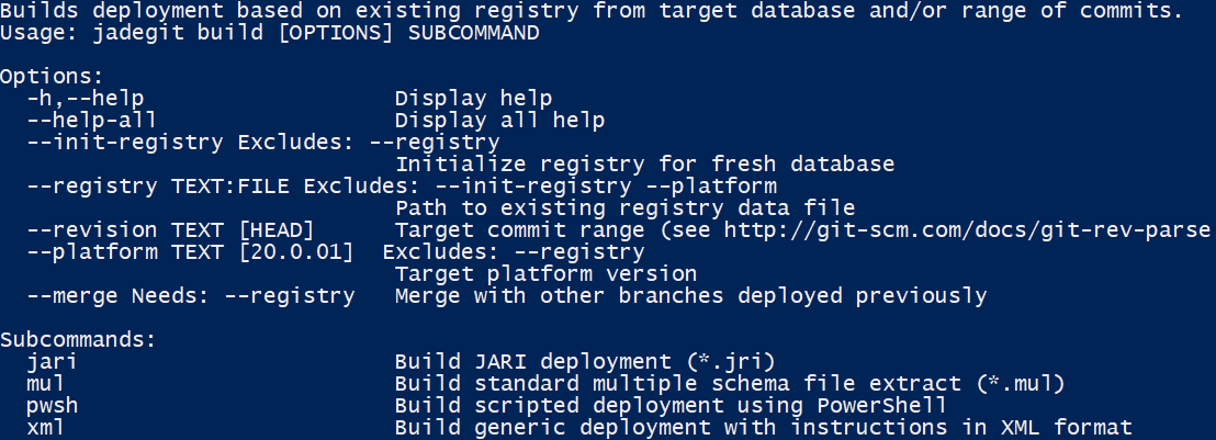 The build command provides the ability to build either a complete or incremental deployment, which can then be deployed to a target Jade database.