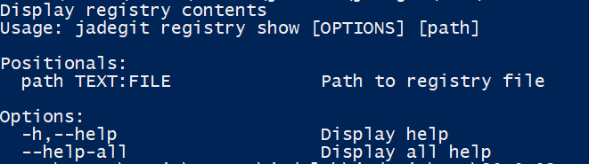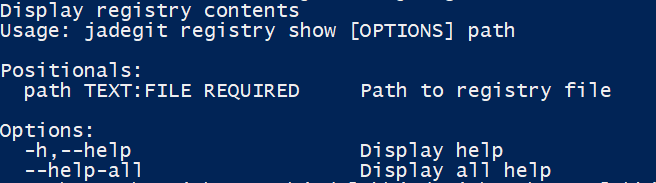 The show subcommand provides the ability to view the registry contents stored in the database or file.
