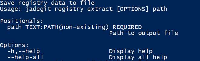 The extract subcommand provides the ability to extract the registry contents from the database and save them to file.