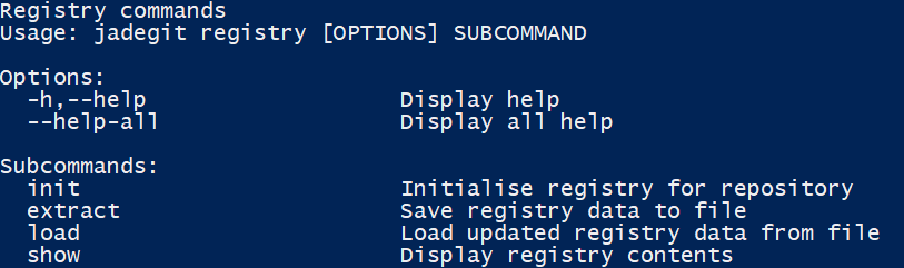 The registry commands provide the ability to initialize, extract, load & show registry data.